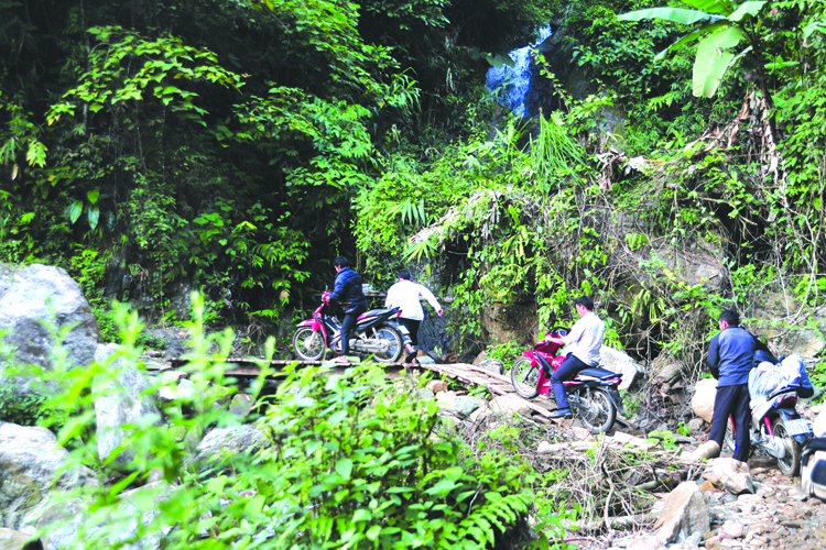 | Đường về bản đa phần gập ghềnh và nguy hiểm |
