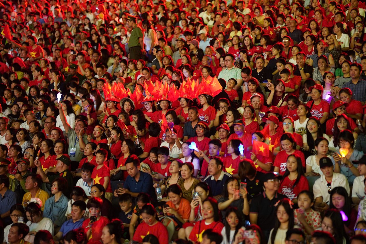 Trước đó từ 18h, khắp các tuyến phố trung tâm Hải Phòng đông nghịt người, dòng người từ mọi ngả đường đổ về khu vực quảng trường Trung tâm Chính trị - Hành chính tại Khu đô thị mới Bắc sông Cấm, thành phố Thuỷ Nguyên, thành phố Hải Phòng để hòa mình vào không khí lễ hội.