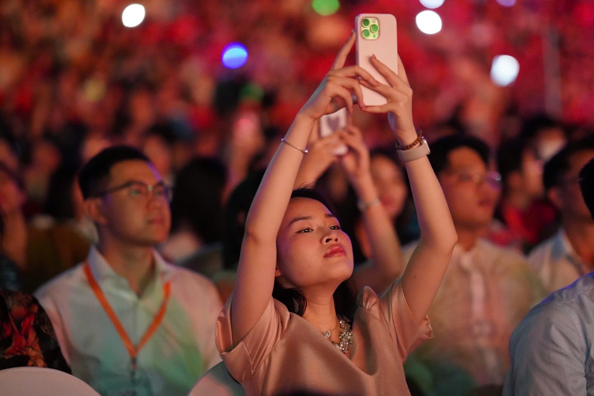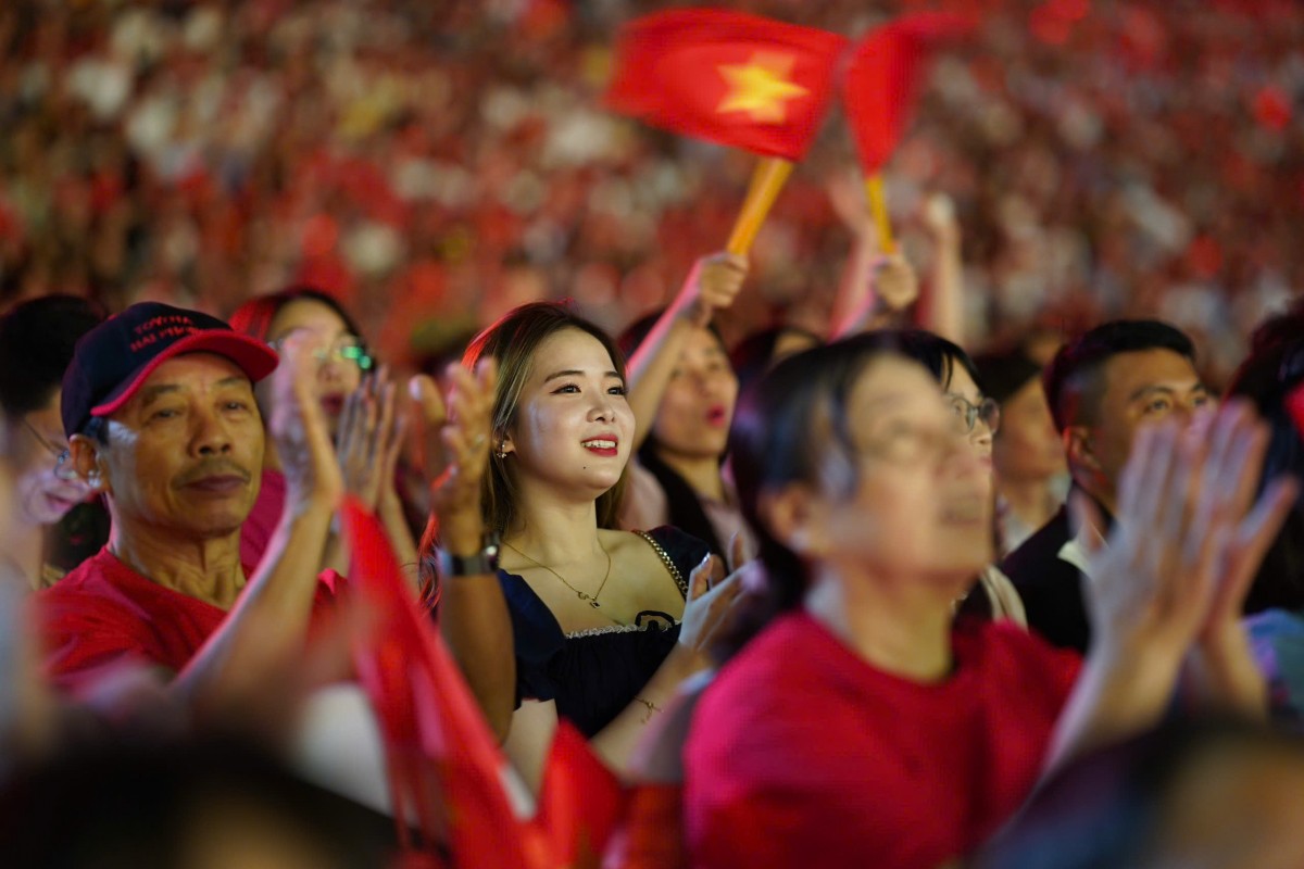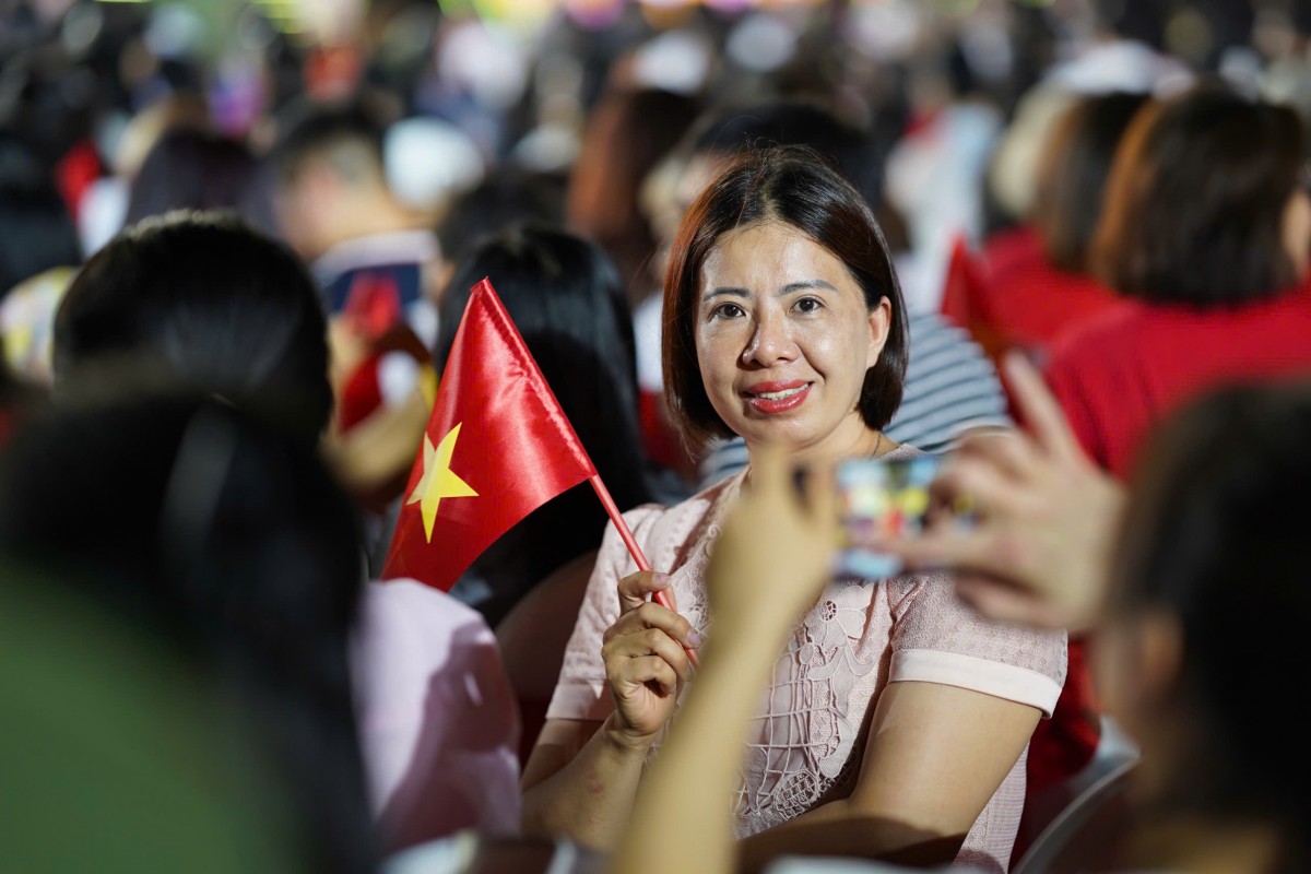 Tại buổi lễ, chương trình pháo hoa tầm cao rực rỡ, thắp sáng cả bầu trời đêm tháng Năm, hòa cùng tiếng reo hò, vỗ tay vang dội của hàng nghìn người dân đang sống trọn khoảnh khắc lịch sử.