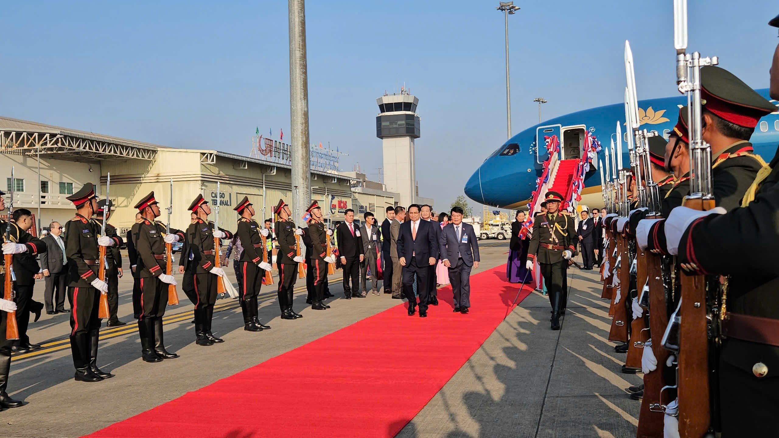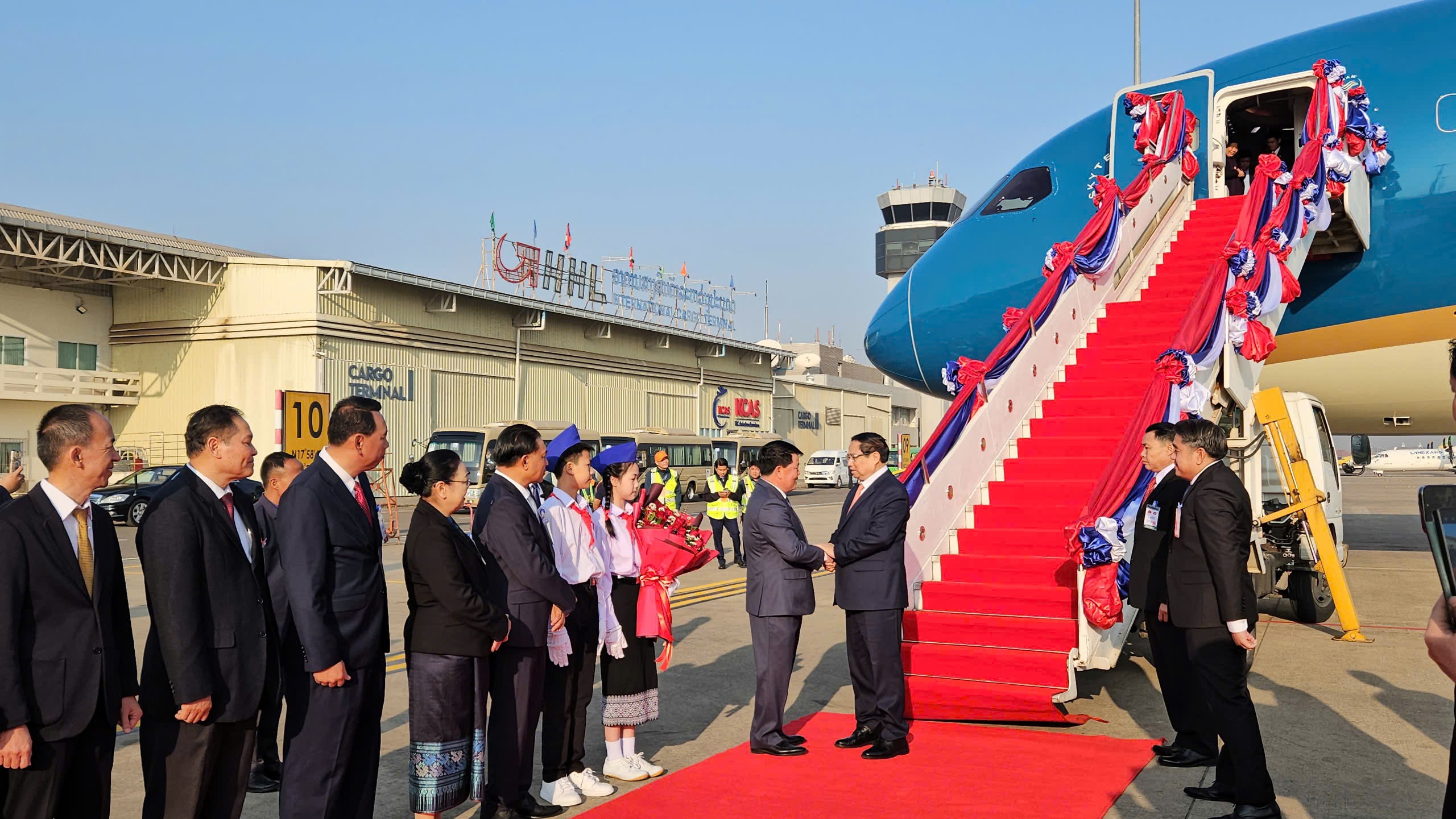 | Thủ tướng Chính phủ Phạm Minh Chính và Đoàn đại biểu Việt Nam đã tới sân bay quốc tế Wattay, Thủ đô Vientiane, bắt đầu thăm, công tác tại Lào |