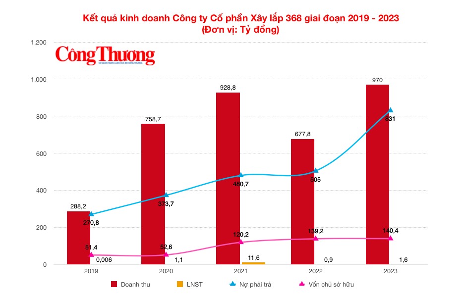 Đến cuối năm 2023, Công ty Xây lắp 368 nâng cấp bộ đệm vốn lên 120 tỷ đồng, nhưng số nợ vẫn đáng lo ngại với 480 tỷ đồng, sự chênh lệch là 360 tỷ đồng, bỏ xa hệ số nợ bình quân của ngành xây dựng. Lãi vay là một trong số nguyên nhân "bóp nghẹt" lợi nhuận của Công ty Xây lắp 368, khiến lợi nhuận trung bình 5 năm qua (2019 - 2023) chỉ khoảng 3 tỷ đồng, trong khi doanh thu lên tới 720 tỷ đồng/năm.