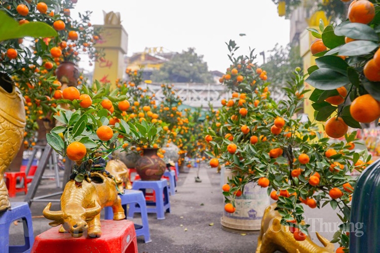 Bên cạnh đó, để phục vụ thượng khách, các cửa hàng quất năm nay cũng chưng những chậu quất cảnh cũng được trang trí bắt mắt theo chủ đề hình trâu, tương ứng với năm Tân Sửu 2021 nhằm mang lại vượng khí, tài phúc cho gia chủ. Mỗi chậu quất này đều có giá từ 500-1.000 đồng.