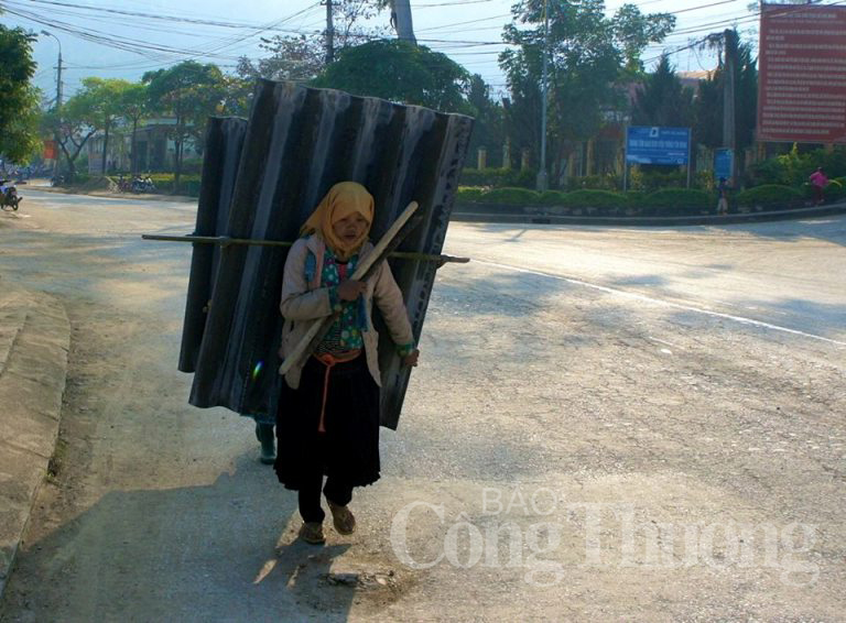 Người phụ nữ Mông cõng tấm lợp suốt 5km từ thị trấn về bản