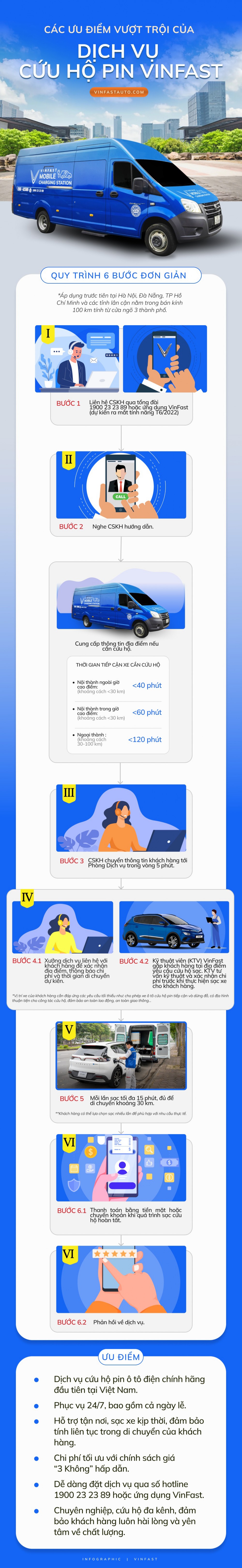 Chỉ cần gọi điện tới tổng đài hoặc đặt dịch vụ qua ứng dụng, người dùng ô tô điện VinFast sẽ được cứu hộ pin tại chỗ nếu chẳng may hết pin giữa đường với chi phí chỉ 300.000 đồng/lần cứu hộ, phục vụ 24/7, 365 ngày trong năm, kể cả ngày lễ.