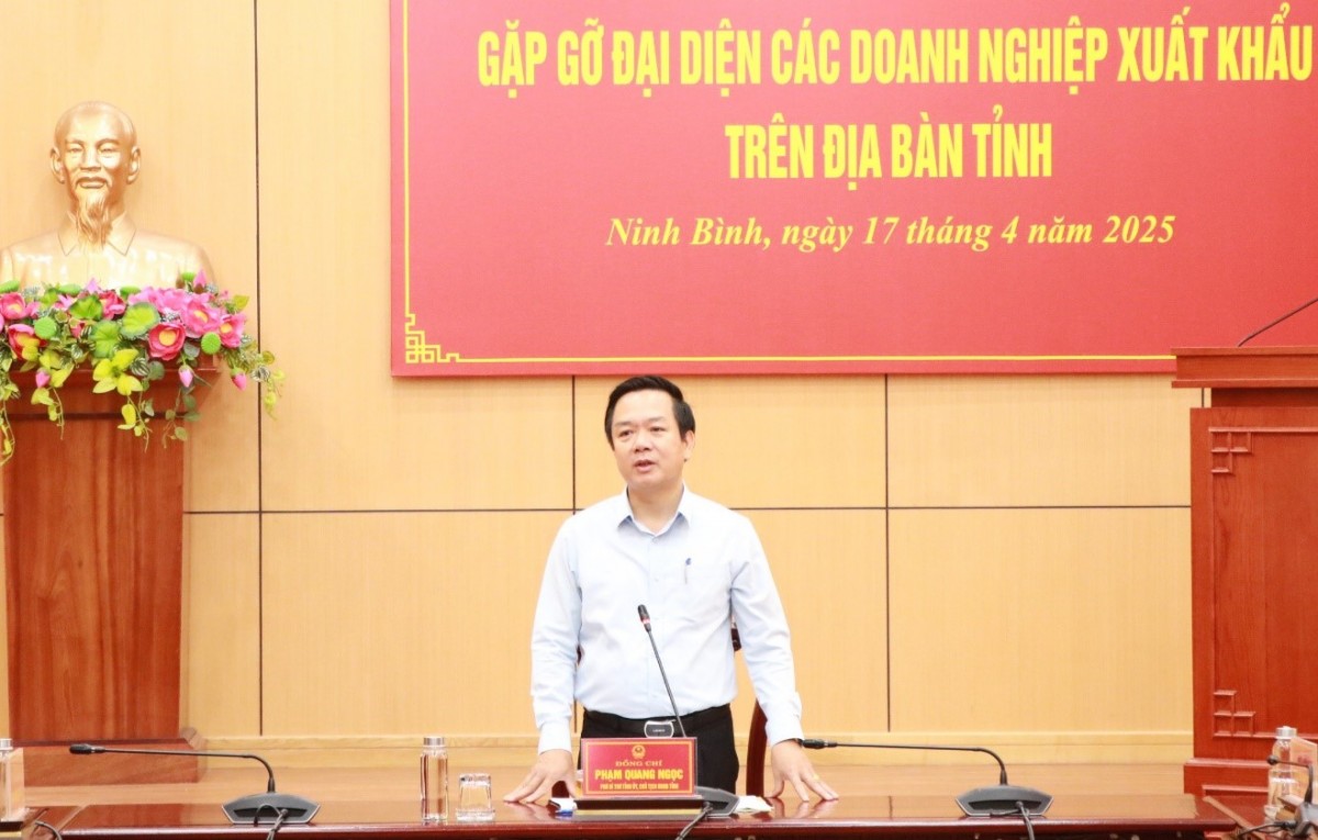 Cùng thời điểm diễn ra Hội nghị quốc gia, tỉnh Ninh Bình cũng nhanh chóng tổ chức Hội nghị riêng nhằm gặp gỡ, lắng nghe ý kiến trực tiếp từ cộng đồng doanh nghiệp xuất khẩu trên địa bàn tỉnh. Hội nghị địa phương diễn ra ngày 17/4/2025 do ông Phạm Quang Ngọc, Phó Bí thư Tỉnh ủy, Chủ tịch UBND tỉnh Ninh Bình trực tiếp chủ trì, thể hiện sự quan tâm sâu sát và quyết liệt trong công tác tháo gỡ khó khăn cho doanh nghiệp địa phương.