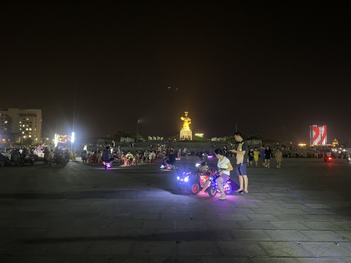 Theo ghi nhận hiện tại quảng trường mỗi tối phải có vài trăm “phương tiện” đủ loại từ ô tô, xe máy, xe đạp điện “tham gia giao thông” tại sân Quảng trường Định Tiền Hoàng Đế… Thực sự là nhìn cảnh những chiếc xe điện nhấp nháy đèn được các em nhỏ điều khiển quanh sân quảng trường thật vui mắt, các em nhỏ cũng có được trải nghiệm thú vị và những giây phút vui vẻ. Không chỉ trẻ em mà nhiều người lớn cũng tham gia…