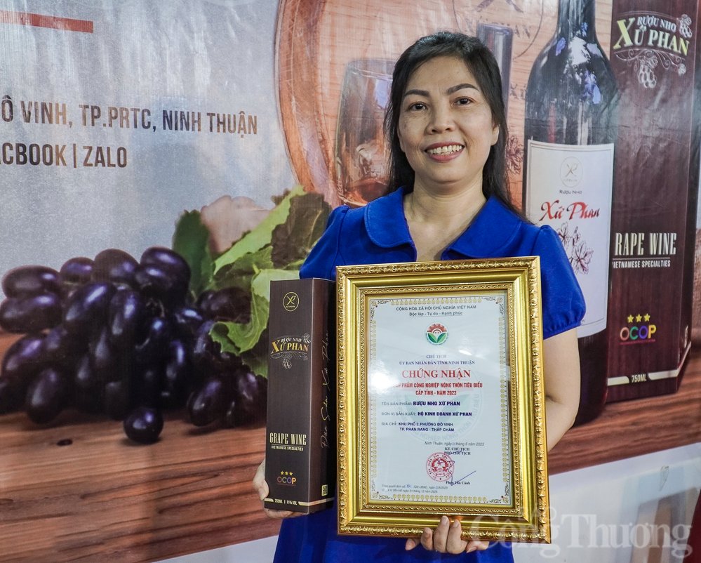 Theo bà Trần Gia Minh Châu – Chủ cơ sở kinh doanh Xứ Phan (thành phố Phan Rang – Tháp Chàm) đạt chứng nhận sản phẩm công nghiệp nông thôn tiêu biểu tỉnh Ninh Thuận năm 2023 cho sản phẩm Rượu nho Xứ Phan, cho biết: Chứng nhận sản phẩm nông nghiệp nông thôn tiêu biểu sẽ củng cố thêm uy tín thương hiệu cho cơ sở. Khi đưa sản phẩm qua đường chính ngạch, việc sản phẩm có thương hiệu, có chứng nhận sẽ chiếm được lòng tin của người tiêu dùng.