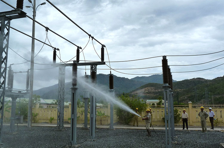 | Công nhân PTC3 vệ sinh cách điện bằng nước cách điện áp lực cao |