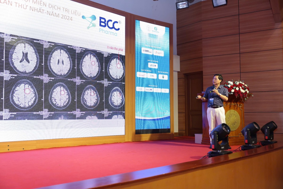 | Giáo sư, Tiến sĩ, Viện sĩ Nguyễn Văn Năm trình bày tham luận tại Hội thảo quốc tế về miễn dịch trị liệu ung thư Việt Nam lần thứ nhất |