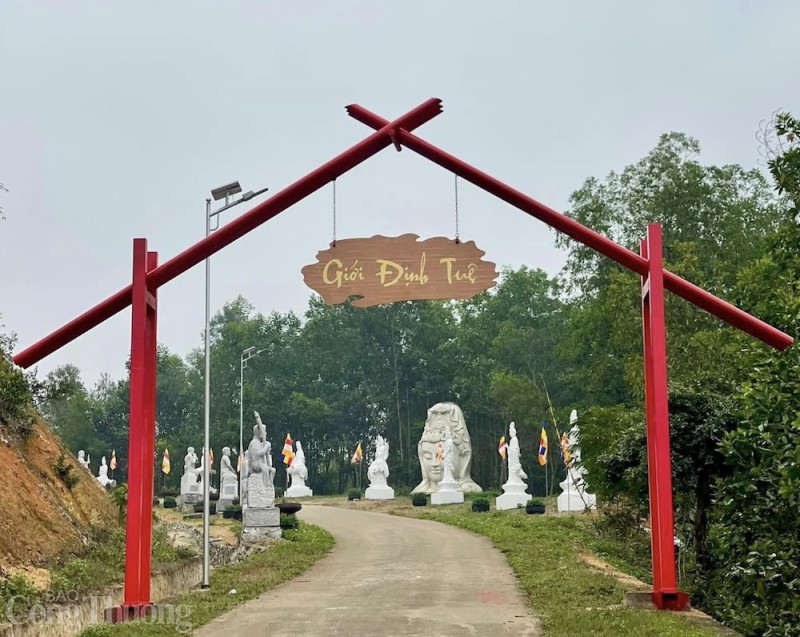 Khuôn viên chùa được trang trí đẹp để phục vụ nhu cầu check-in của du khách