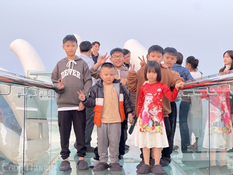 Các em nhỏ hào hứng trải nghiệm cầu kính