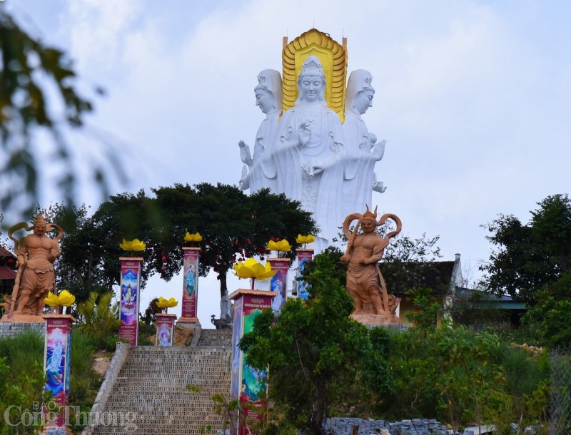 Trên đỉnh núi có 4 pho tượng Bồ Tát quay mặt ra 4 hướng Đông - Tây - Nam - Bắc