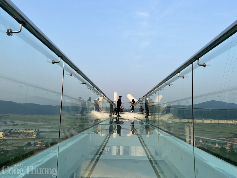 Tiếp đó là cây cầu kính rộng khoảng 1,5m, dài khoảng 40m, được đỡ bằng bàn tay khổng lồ đặt ở góc cua