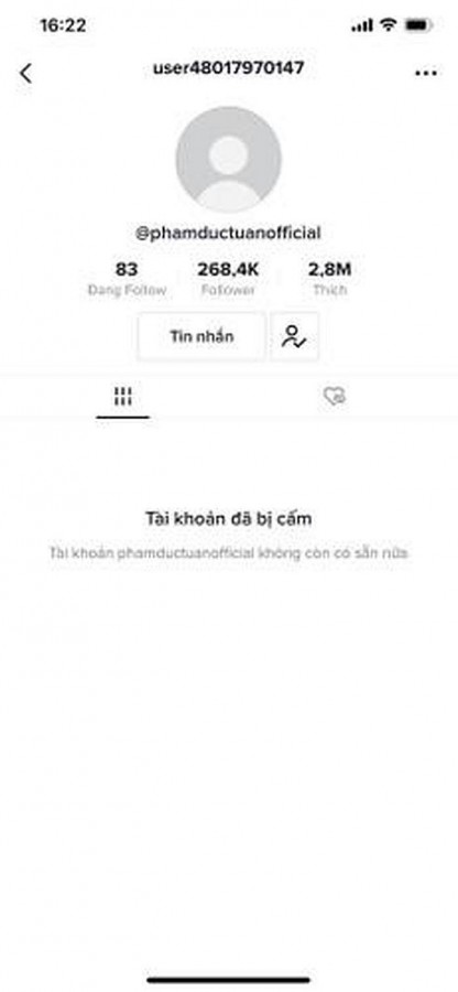 Thời điểm tài khoản mới của TikToker Nờ Ô Nô biến mất, lượng người follow đã chạm đến con số 268.000.Khi truy cập vào kênh này, người xem nhận được thông báo: "Tài khoản này đã bị cấm". Cho đến nay, kênh vẫn chưa hiển thị trở lại.