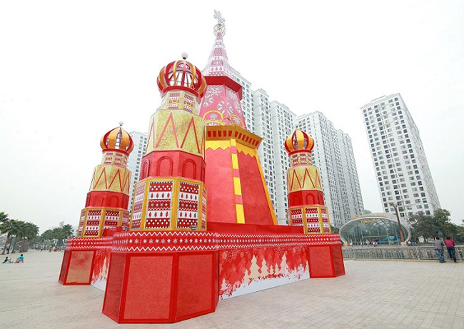 Tại Hà Nội, người dân Thủ đô có cơ hội đón Giáng sinh nước Nga tại Vincom Mega Mall Times City với khung cảnh của Quảng trường Đỏ - cùng những ngọn tháp chóp hình củ hành độc đáo mang gương mặt của Santa; hay Giáng sinh Bắc Cực tại Vincom Mega Mall Royal City với không gian mang tông màu xanh chủ đạo bao trọn quang cảnh của trung tâm thương mại.