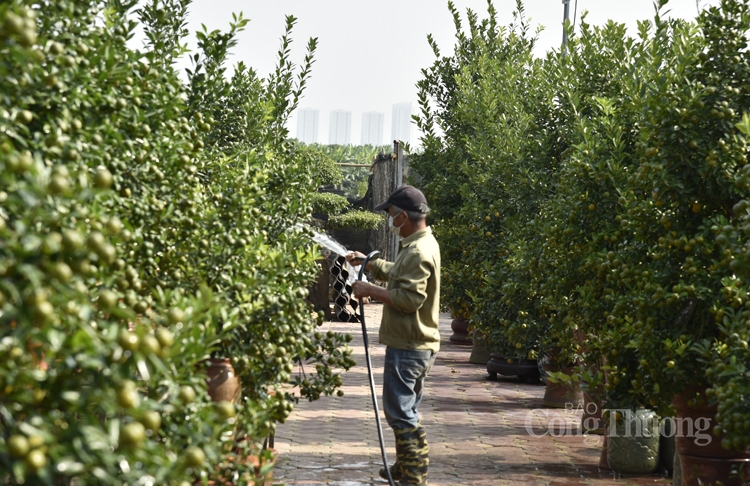 | Các nhà vườn đang hoàn thiện những khâu cuối cho cây quất |