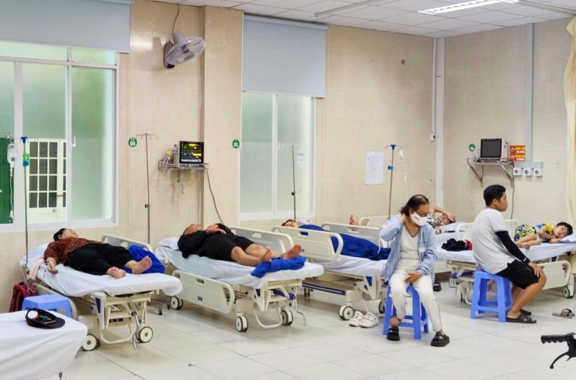 | Bệnh viện Đa khoa Sài Gòn - Nha Trang tiếp nhận một số ca bệnh nghi bị ngộ độc sau khi ăn cơm gà. Ảnh: Ly L |