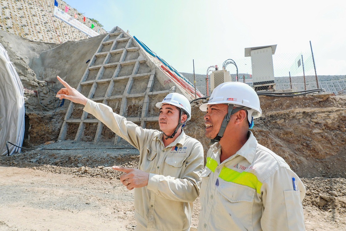 Đi tiếp, tôi tình cờ gặp anh Nguyễn Phi Đô - Ca trưởng Tổ Kỹ thuật hầm Tuy An. Anh chia sẻ: “Biết rõ khó khăn của công việc này, nhưng càng khó, tôi càng quyết tâm càng muốn chinh phục. Chúng tôi có anh em đồng nghiệp bên cạnh cùng sẻ chia gian truân khi việc thi công không được thuận lợi, chia sẻ niềm hân hoan khi vừa hoàn tất một công đoạn khó nhằn. Ở đây, lãnh đạo Tập đoàn cũng thường xuyên đến thăm công trường động viên, khích lệ anh em”.