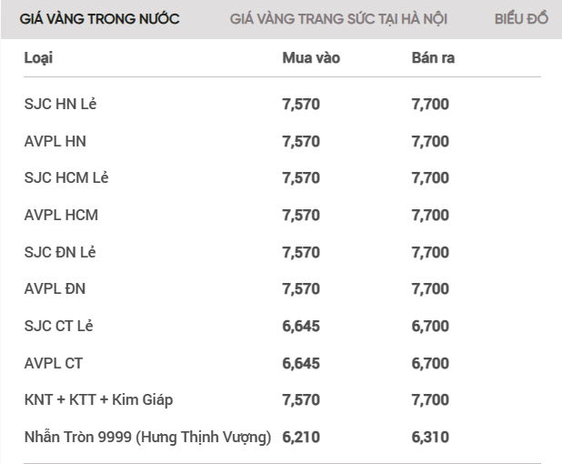 Giá vàng trong nước