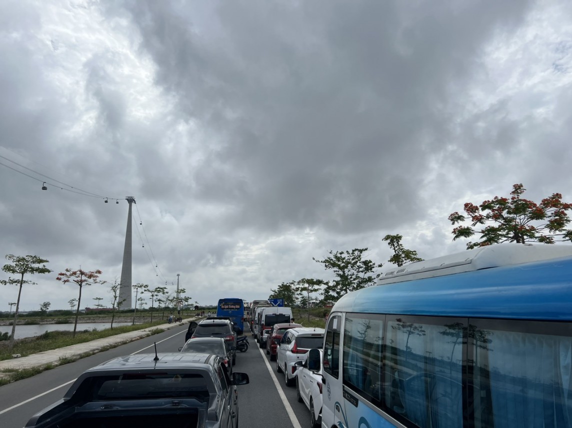 Dòng xe xếp hàng chờ phà - Ảnh: Page Hải Phòng