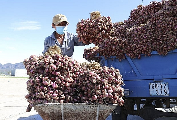Hiện tại, hành tím củ tươi đang được thương lái thu mua tại ruộng với giá dao động từ 25.000-30.000 đồng/kg, hành khô giống có giá từ 45.000-50.000 đồng/kg, mức giá cao gấp đôi so với thời điểm cuối năm 2021.