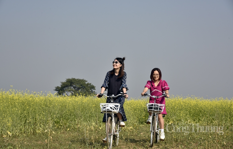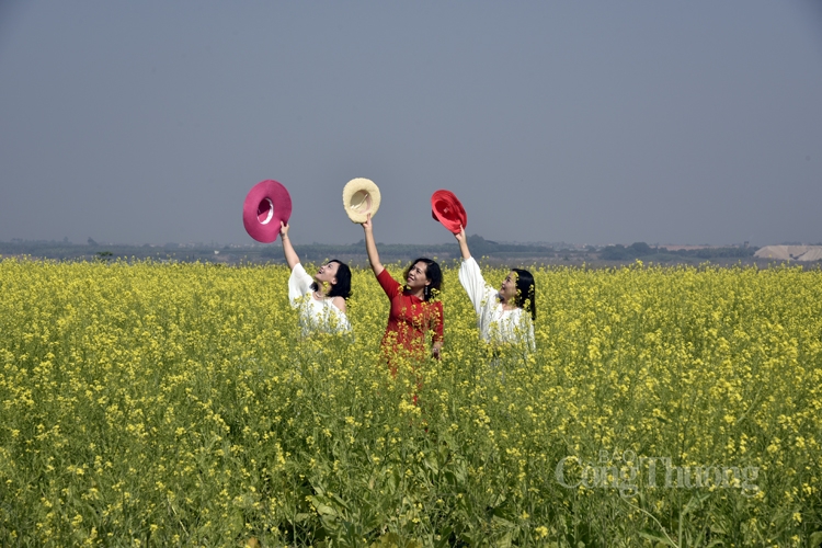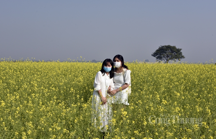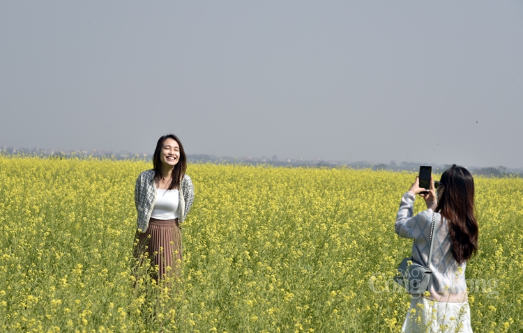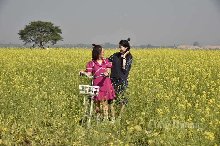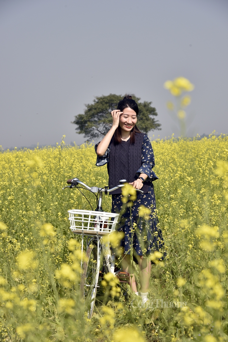 Vẻ đẹp bình dị nhưng cũng hết sức tinh khôi của hoa cải khiến bao du khách đến đây đều say đắm. Bạn Thanh Huyền, đến từ quận Cầu Giấy cảm nhận: Mình cảm thấy choáng ngợp, bước chân như bị níu lại bởi sắc vàng rực rỡ của cánh đồng hoa cải mênh mông. Được hòa mình vào cánh đồng hoa cải, mình mới thấy hết được vẻ đẹp mộc mạc nhưng cũng rất tinh khôi của hoa cải. Khung cảnh bình yên của, cánh đồng mênh mông trổ đầy hoa cải, bên con sông hiền hòa tạo nên bức tranh thiên nhiên làng quê đầy lãng mạn và sắc màu. |