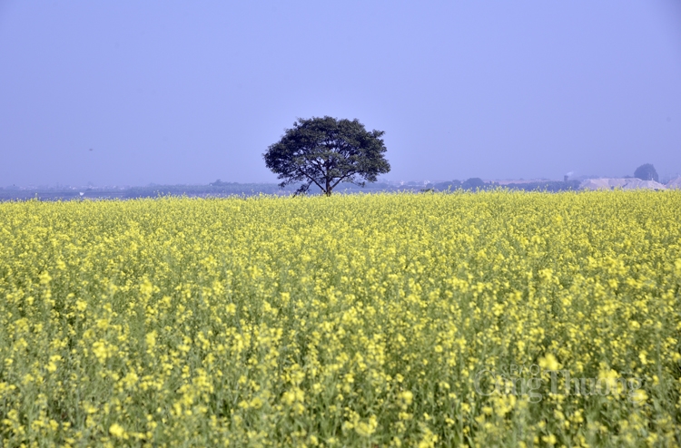 | Cánh đồng hoa cải vàng giữa không gian yên bình |