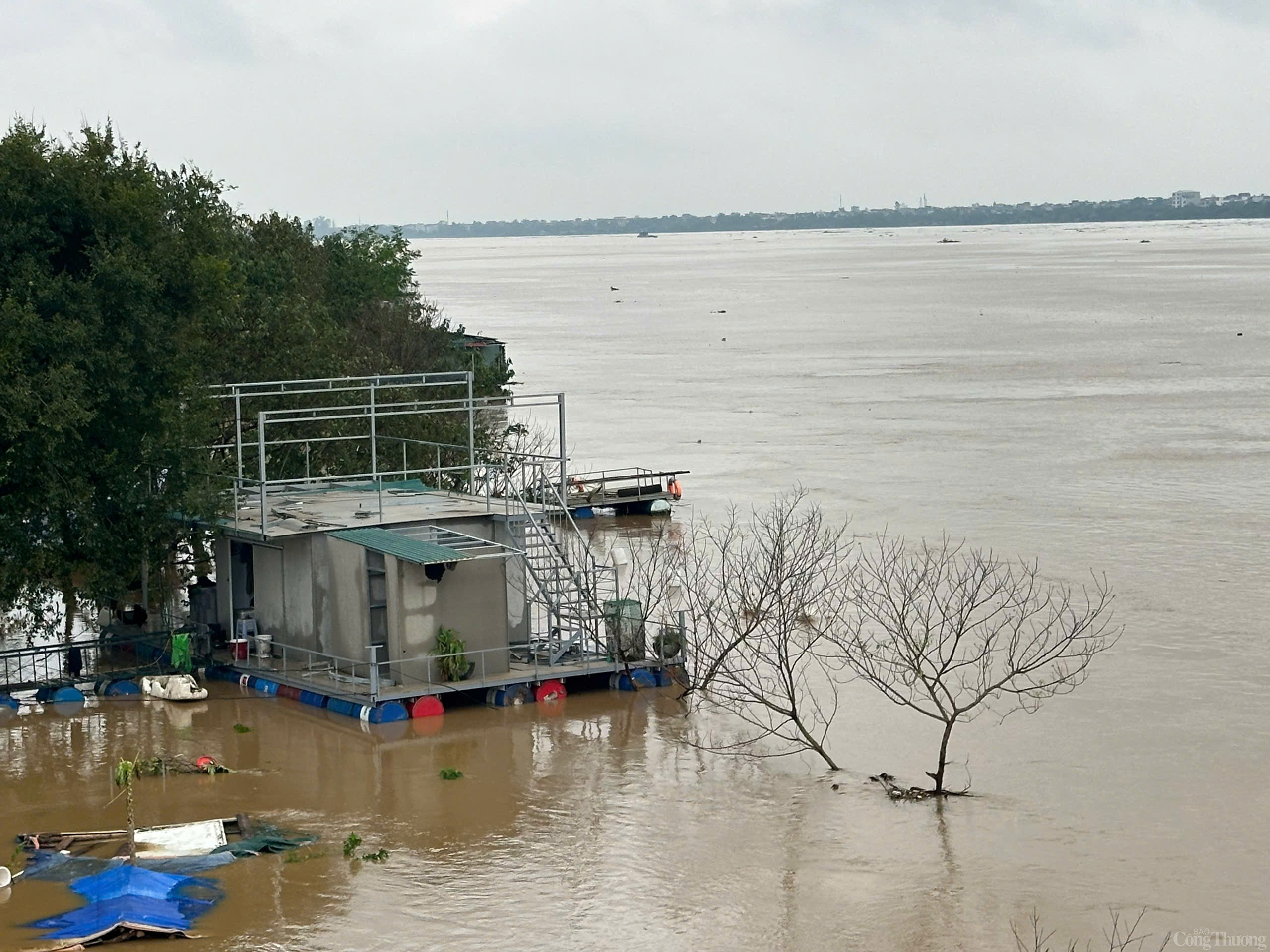 | Khoảng 9 giờ sáng 10/9, Ban Chỉ huy PCTT và TKCN Hà Nội đã Lệnh báo động lũ tại 2 huyện Thường Tín và Phú Xuyên. Ảnh: Mực nước trên sông Hồng dâng cao, dự báo đạt báo động I vào tối 10/9. |