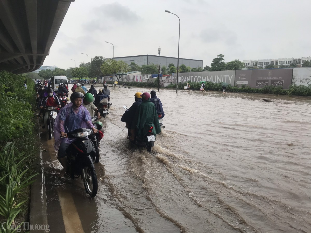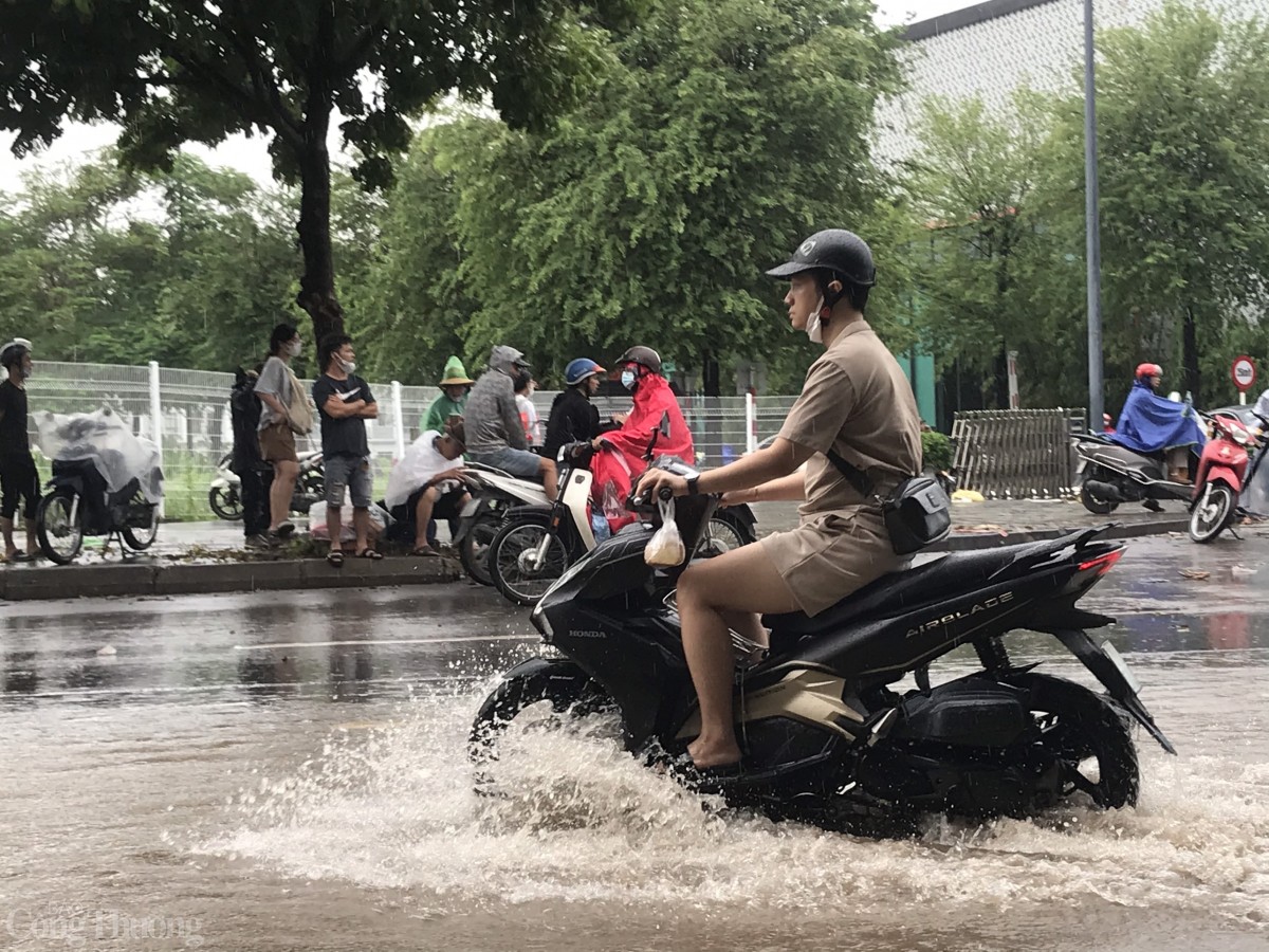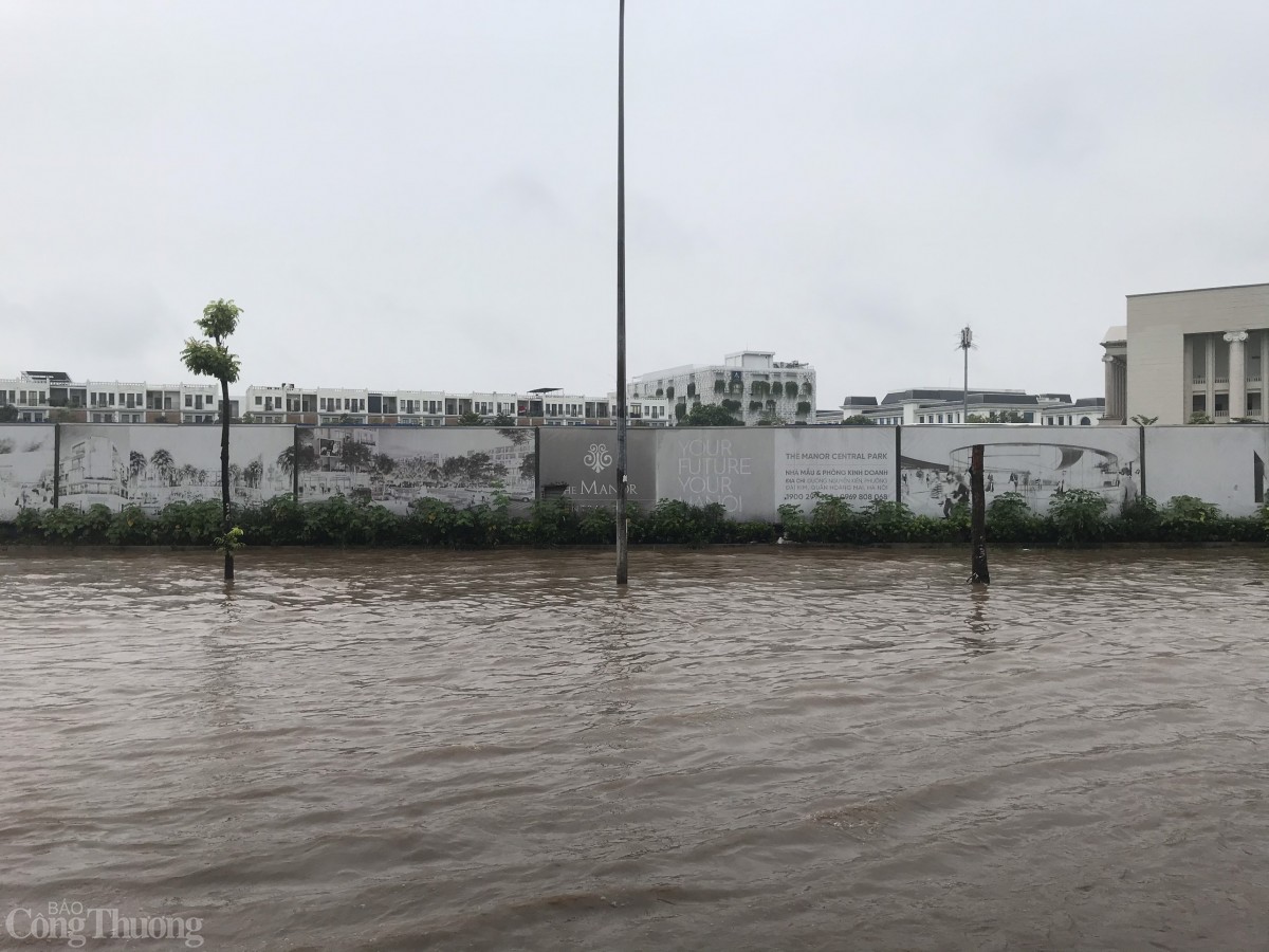 | Trao đổi với phóng viên Báo Công Thương, một nhân viên tại Công ty TNHH Một thành viên thoát nước Hà Nội chia sẻ: "Lượng mưa lớn vào đêm và sáng sớm khiến lượng nước dâng lên cao. Rác, lá cây bị trôi về các hố thoát nước gây ứ đọng. Hiện nay, chúng tôi đang giải quyết việc thoát nước tại đây, nước đã bắt đầu rút dần và dự kiến khoảng 10h sẽ đáp ứng cho giao thông thông suốt trở lại". Ảnh: Trần Đình |