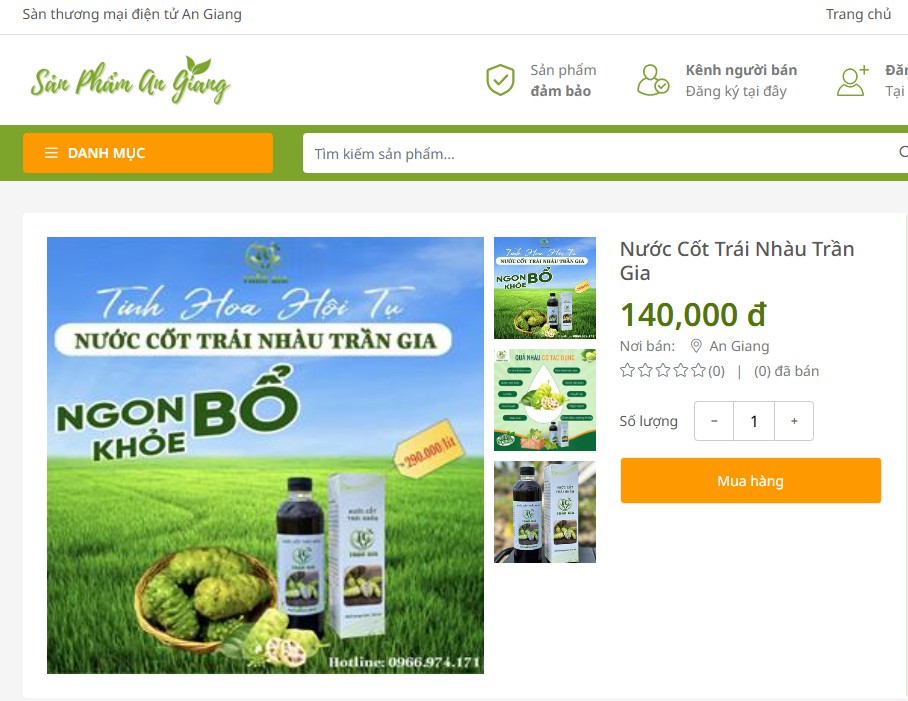 | Sản phẩm nước cốt trái nhàu Trần Gia đang được quảng bá, giới thiệu rộng rãi trên Sàn Việt |