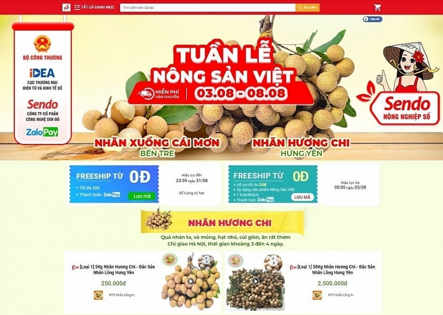 Cụ thể, các chương trình thúc đẩy bán hàng nông sản, đặc sản vùng miền địa phương qua “Gian hàng Việt trực tuyến Quốc gia” trên các Sàn thương mại điện tử đã được Cục Thương mại điện tử và Kinh tế số phối hợp với các Sở Công Thương địa phương và các nền tảng thương mại điện tử lớn như Sendo, Voso, Tiki, Shopee, Lazada, Postmart… triển khai, tiêu biểu như như Đặc sản Sơn La, Ngày hội xứ Dừa – Bến Tre, Phiên chợ Nông sản Việt, Tuần lễ Nông sản Việt, Chương trình đẩy mạnh tiêu thụ vải thiều Hải Dương, vải thiều Bắc Giang, Na Chi Lăng, Bưởi Phúc Trạch…