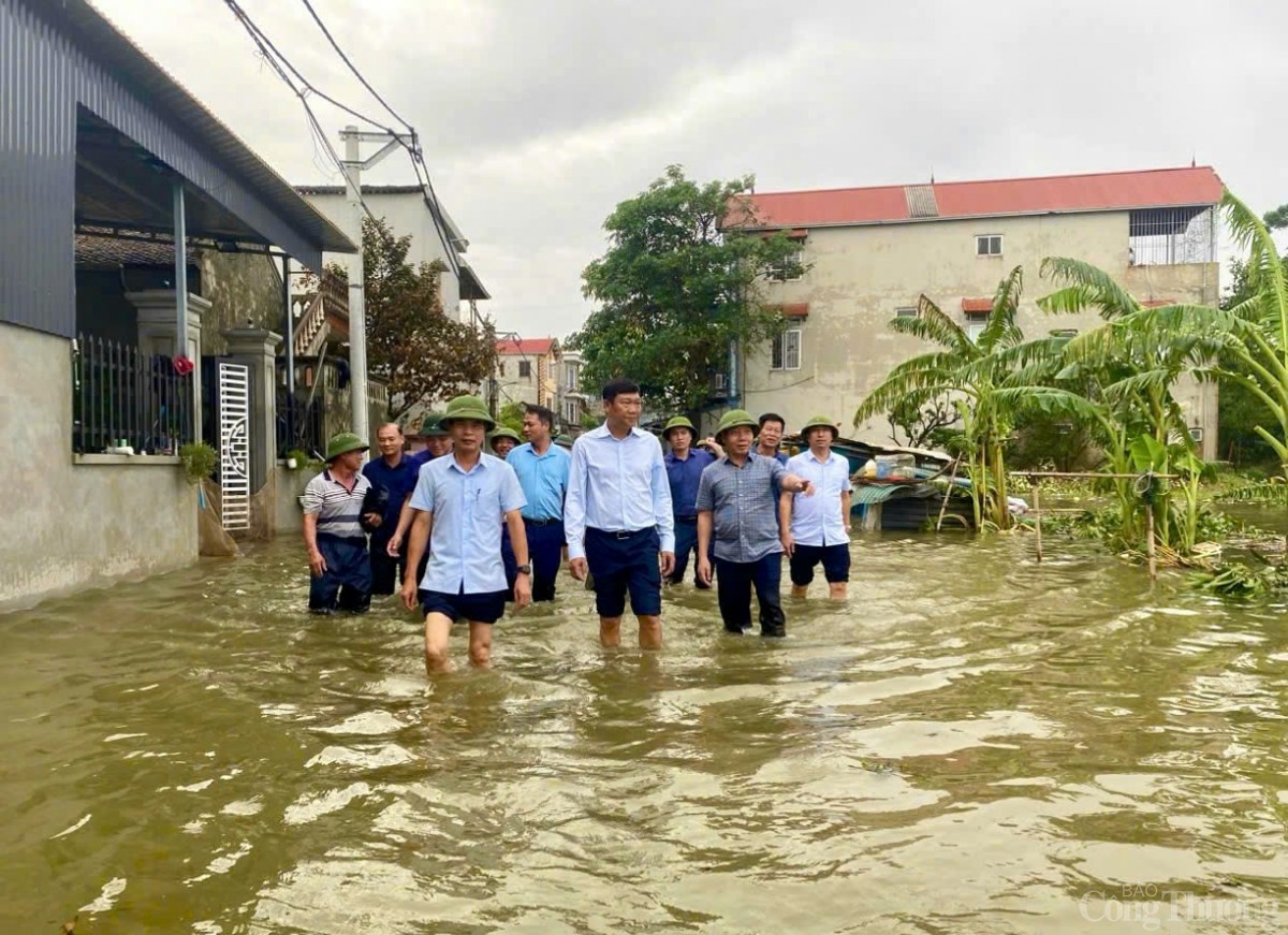 Trưởng ban Dân vận Thành ủy Đỗ Anh Tuấn kiểm tra tình hình úng ngập tại huyện Quốc Oai |