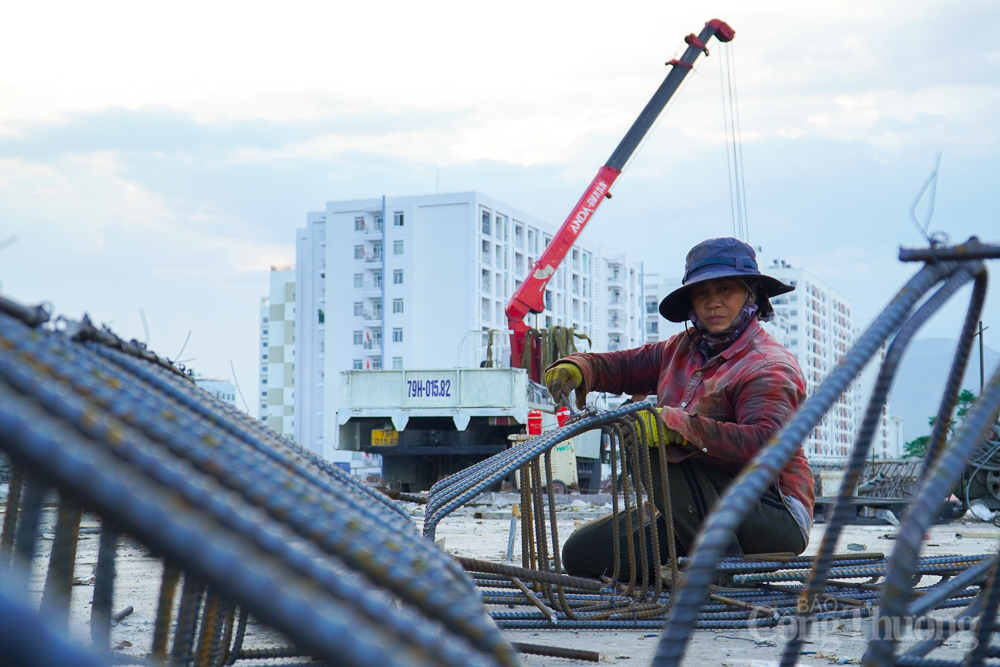 | Trên công trường, công nhân làm việc 3 ca ngày đêm để kịp tiến độ |