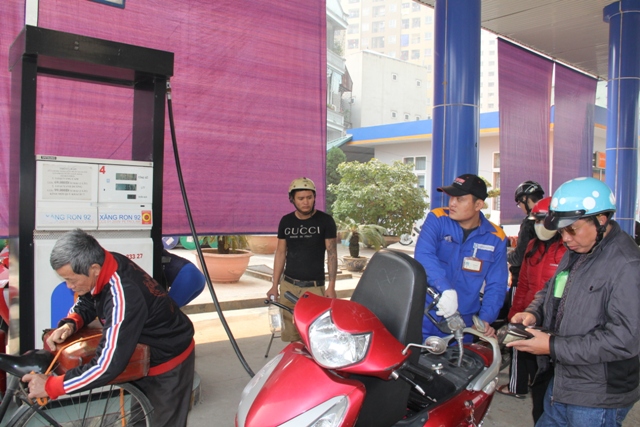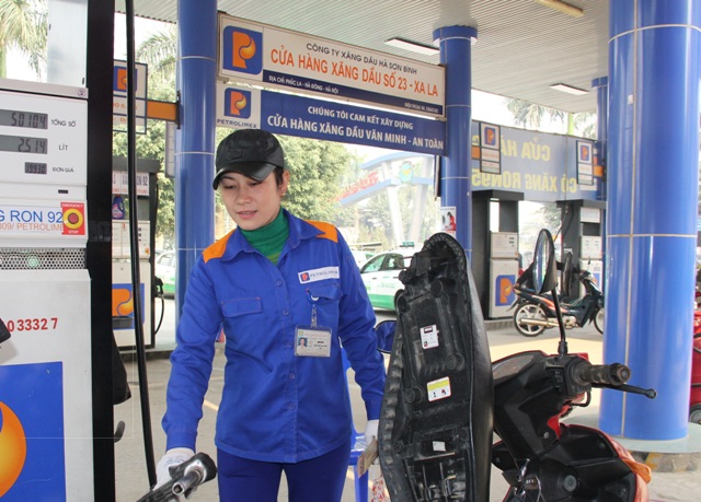 Nhân viên CHXD số 23 Xa La phục vụ khách hàng vào mua xăng dầu.