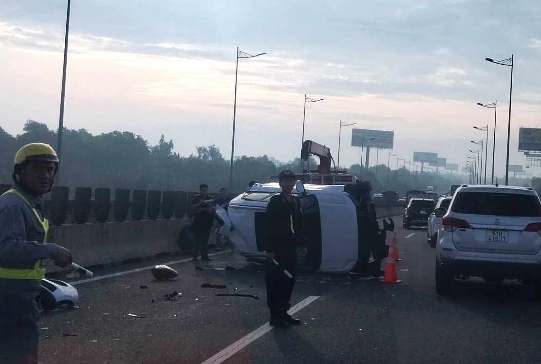 Rạng sáng ngày 9/7, trên cao tốc TP. Hồ Chí Minh - Long Thành - Dầu Giây đã xảy ra vụ tai nạn giao thông giữa xe container và xe ô tô làm chiếc ô tô lật nhào, một vài người bị thương phải đi viện.