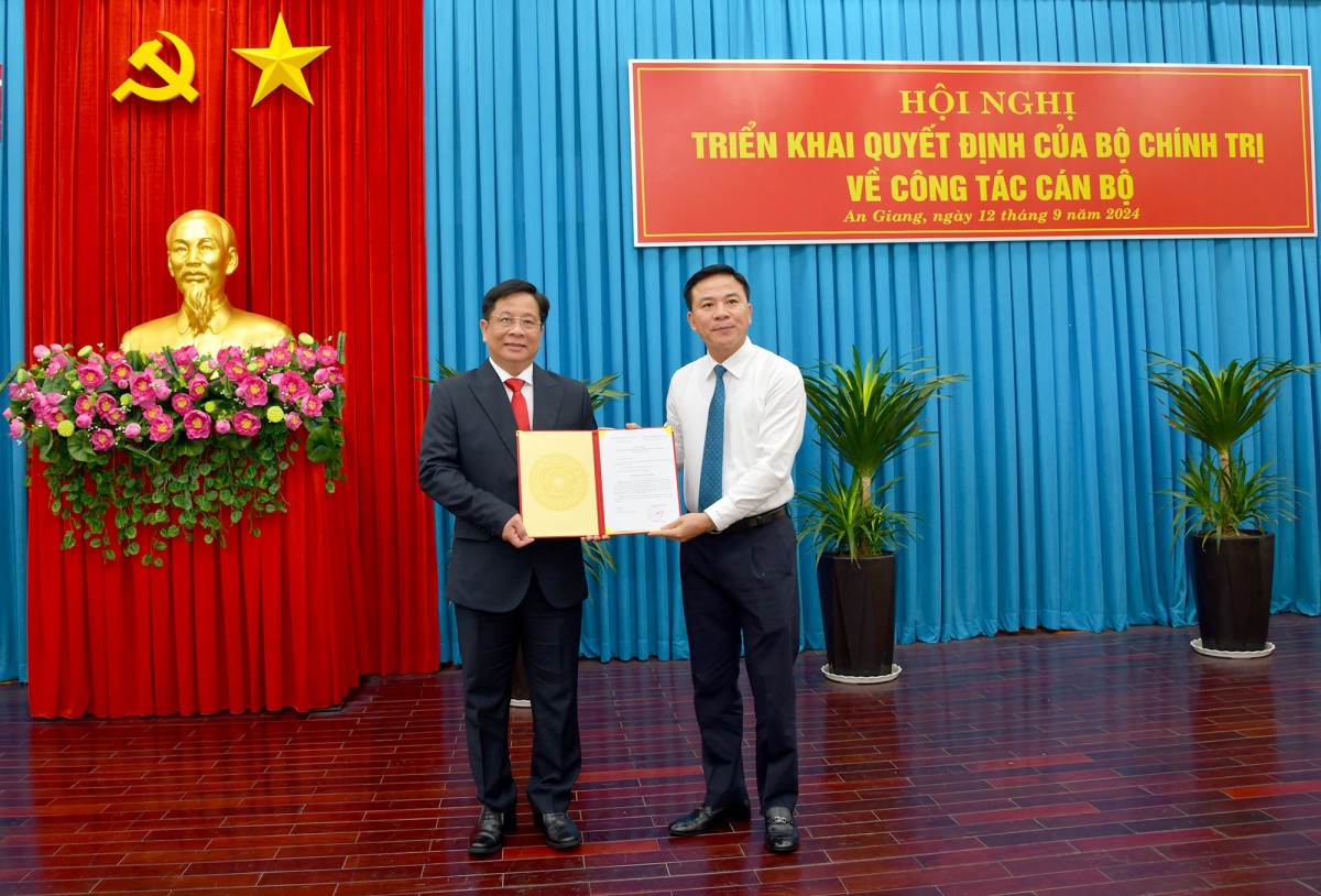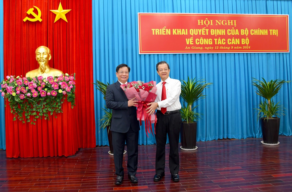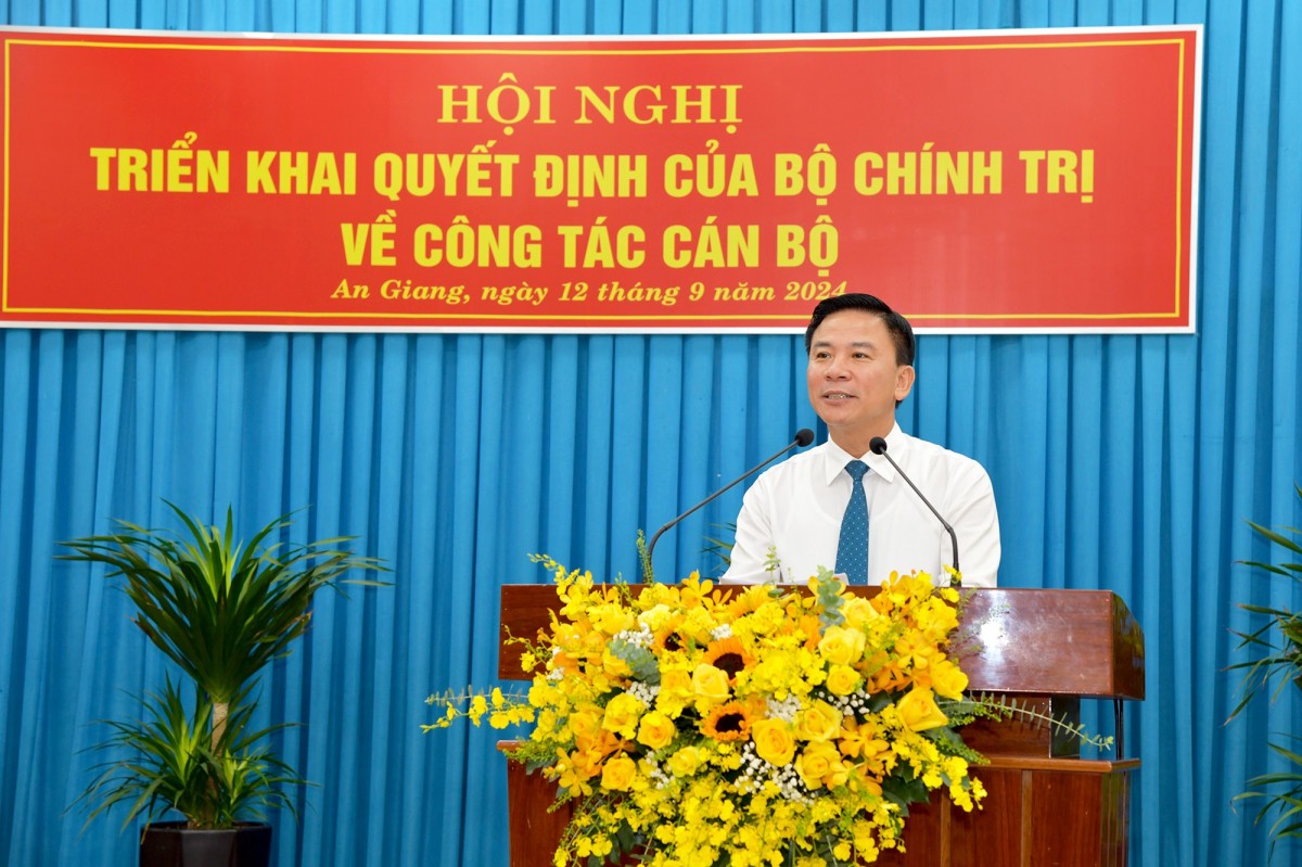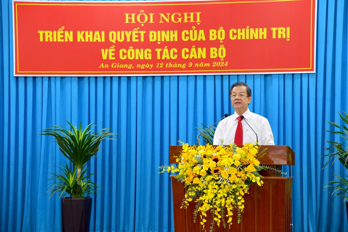 Trước đó, sáng cùng ngày (12/9), Tỉnh ủy An Giang tổ chức Hội nghị triển khai Quyết định của Bộ Chính trị về công tác cán bộ.