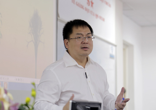 | Ông Hoàng Nam Tiến chia sẻ tại buổi hội thảo "Tăng trưởng hay chết" với sự tham gia của nhiều doanh nghiệp trẻ |