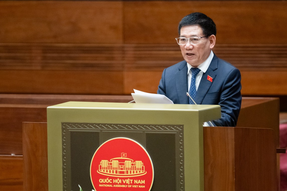 | Bộ trưởng Hồ Đức Phớc báo cáo trước Quốc hội vào chiều ngày 20/5 (Ảnh: QH) |