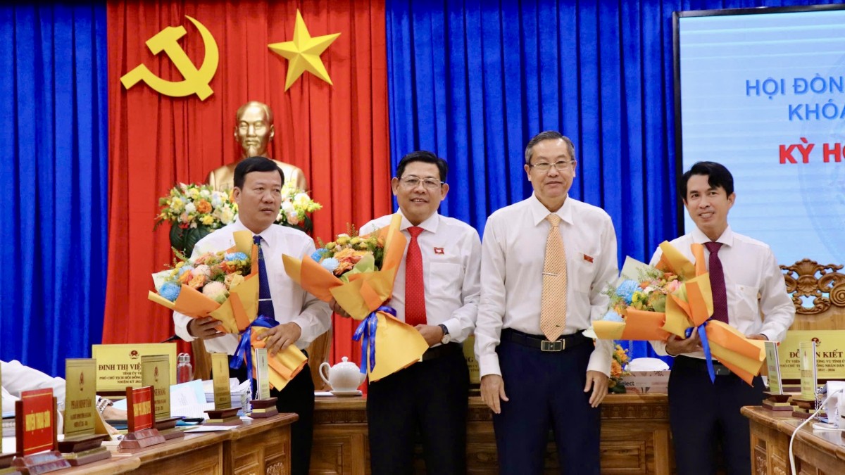 Ông Ngô Công Thức (thứ 2 từ trái qua) được bầu giữ chức Phó Chủ tịch UBND tỉnh An Giang. Ảnh: Hải Dương/PLO.