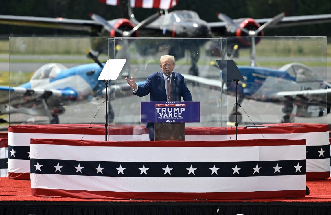 Bài phát biểu của ông Trump ở Bắc Carolina chủ yếu tập trung vào an ninh quốc gia. Ông đổ lỗi cho Tổng thống Biden và Phó Tổng thống Kamala Harris về cuộc rút quân hỗn loạn khỏi Afghanistan và các cuộc chiến ở Ukraine, Trung Đông. Theo ông, bà Harris là "người cánh tả cực đoan nhất từng tranh cử chức vụ chính trị cao cấp ở đất nước chúng ta và sẽ hủy hoại đất nước nếu được bầu vào Nhà Trắng".
