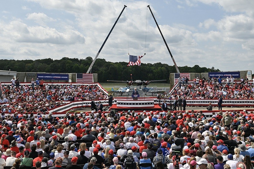 | Cựu Tổng thống Donald Trump tổ chức cuộc vận động tranh cử ngoài trời lần đầu kể từ vụ ám sát hụt. Ảnh: Reuters |