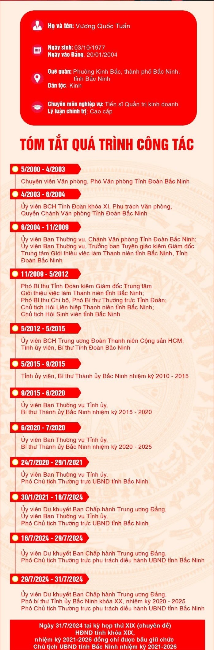 Tóm tắt quá trình công tác của ông Vương Quốc Tuấn - Tân Chủ tịch UBND tỉnh Bắc Ninh.