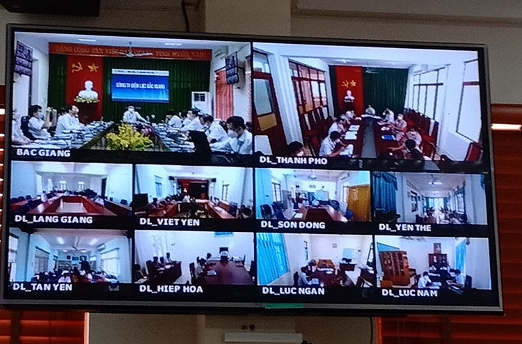 | Các điểm cầu truyền hình các điện lực tham dự cuộc họp |