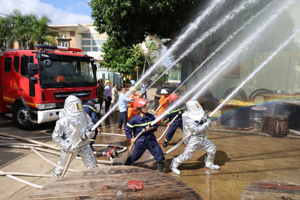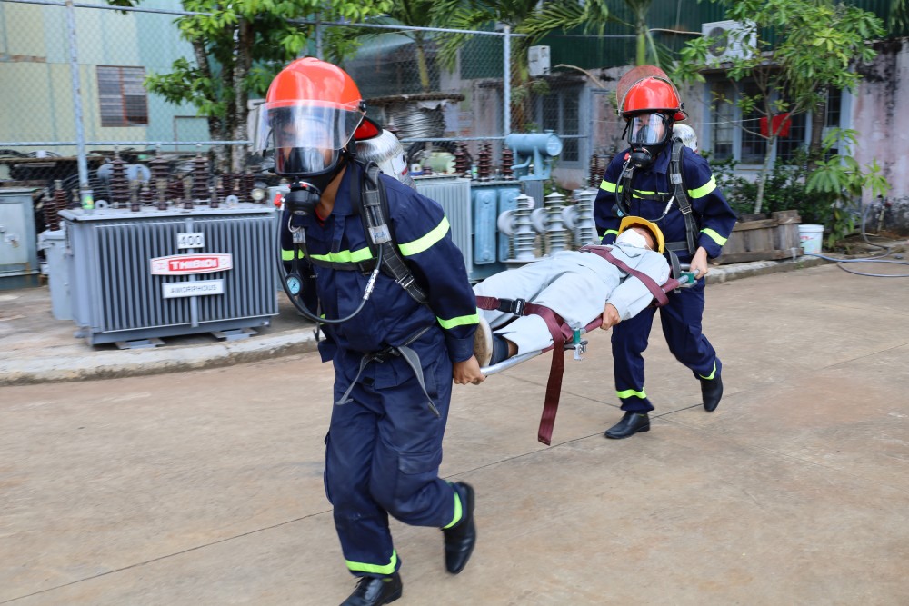 Sáng ngày 21/10 vừa qua, PC Đắk Lắk đã phối hợp cùng Cảnh sát Phòng cháy và Chữa cháy (PC&CC) tỉnh Đắk Lắk tổ chức buổi diễn tập phương án chữa cháy, cứu nạn cứu hộ. Buổi diễn tập có sự tham gia của gần 40 thành viên thuộc Đội Phòng cháy chữa chứa và Cứu nạn cứu hộ (PCCC&CNCH) Nhà điều hành sản xuất Công ty.