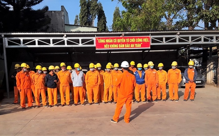 PC Đắk Nông luôn quán triệt đến anh em công nhân trước khi ra hiện trường phải trang bị đầy đủ bảo hộ lao động và thực hiện các biện pháp an toàn trước khi công tác. Việc khảo sát hiện trường, lập phương án thi công chi tiết, cấp lệnh công tác, phiếu công tác, chấp hành đúng quy trình an toàn điện phải được quán triệt và trở thành một thói quen không thể thiếu của người công nhân. Đồng thời, Công ty thực hiện nghiêm túc các quy định của pháp luật về bảo quản, sử dụng và kiểm định kỹ thuật các thiết bị có yêu cầu nghiêm ngặt về an toàn vệ sinh lao động (ATVSLĐ). Theo đó, tại hiện trường công tác, công ty đã thực hiện kiểm tra vị trí đang làm việc của anh em công nhân tại mỗi đơn vị công tác, từ đó phát hiện ra những tồn tại về ATLĐ và có biện pháp chấn chỉnh tại chỗ kịp thời.
