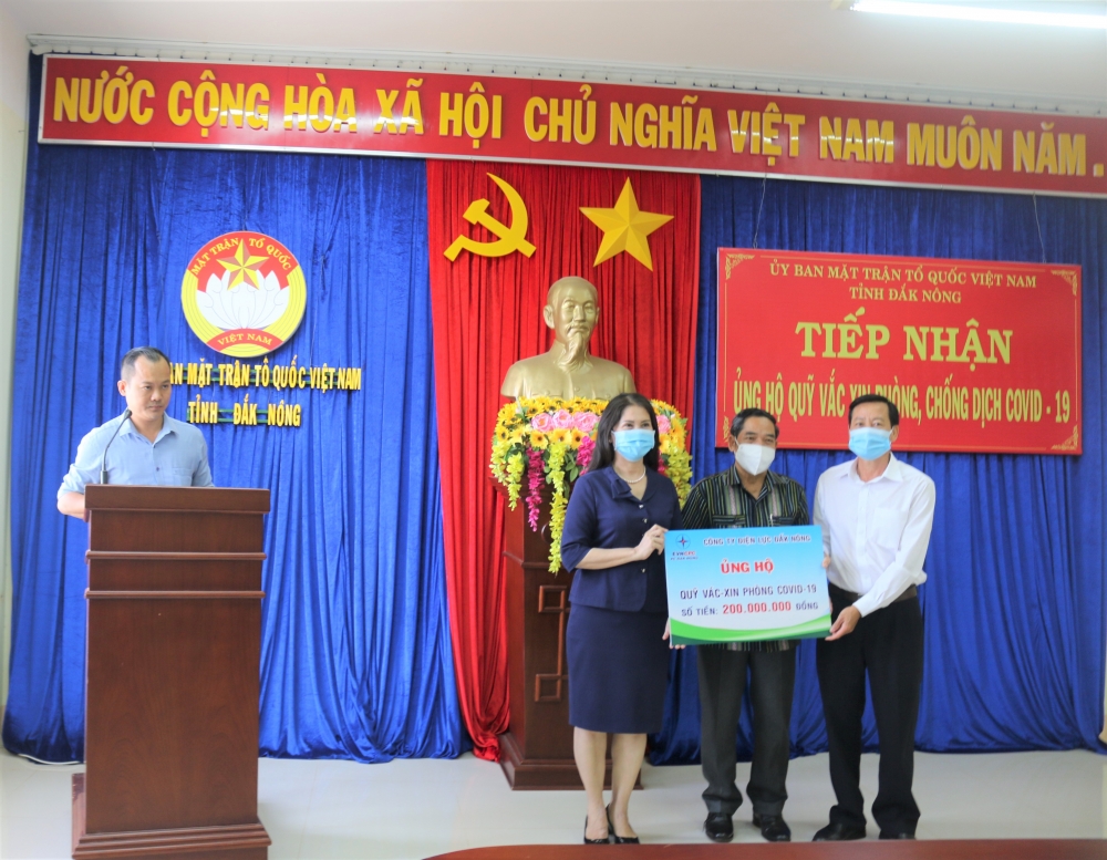 Với tinh thần tích cực tham gia chương trình phát động kêu gọi đóng góp vào Quỹ vắc xin phòng Covid-19 Việt Nam, toàn thể CBCNV PC Đắk Nông đã đóng góp hỗ trợ mỗi người 1 ngày lương vào Quỹ vắc xin phòng Covid-19 Việt Nam.