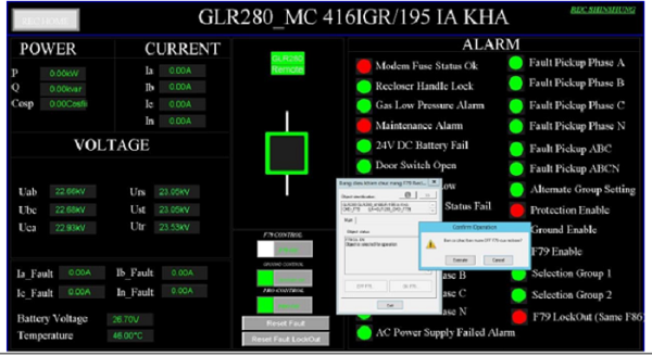 Giao diện Công cụ Control box (Điều khiển đóng cắt Recloser) có sẵn của hệ thống SCADAABB SYS600 để áp dụng điều khiển chức năng ON/OFF F79, ON/OFF Protection |
