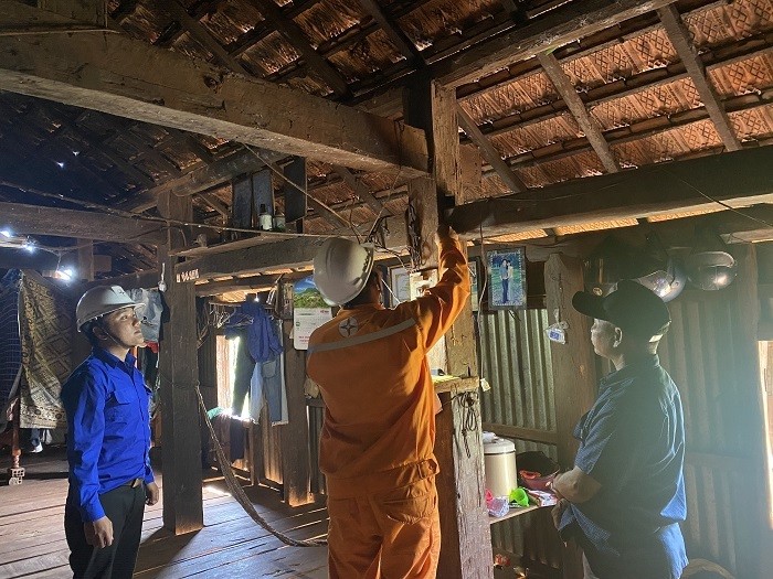 Công nhân PC Gia Lai lắp đặt, hướng dẫn người dân sử dụng điện an toàn, tiết kiệm và hiệu quả (Ảnh: CTV) |
