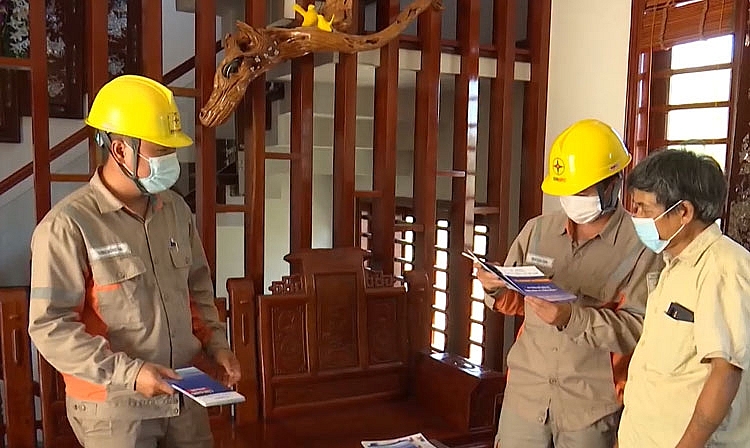| Công nhân Điện lực tuyên truyền và hướng dẫn người dân nên sử dụng điện tiết kiệm, hiệu quả để giảm nguy cơ sự cố và cũng tránh được việc hóa đơn tiền điện tăng cao |