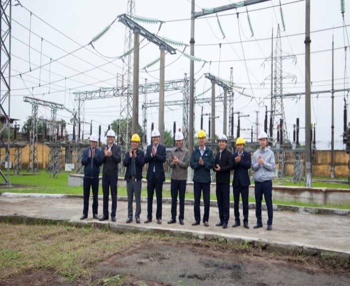 | Ông Nguyễn Hữu Hưởng – Bí thư Đảng ủy, Chủ tịch kiêm Giám đốc Công ty cùng Hội đồng nghiệm thu đóng điện đưa vào vận hành MBA 63 MVA T3 E2.2 |